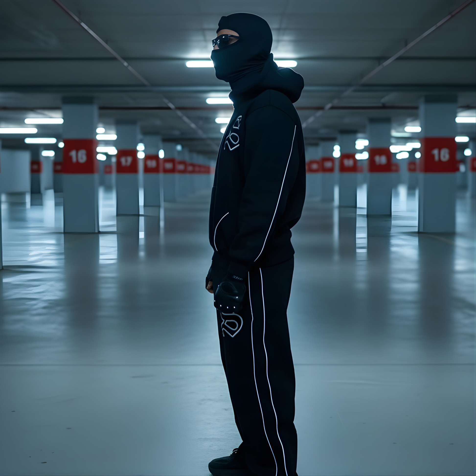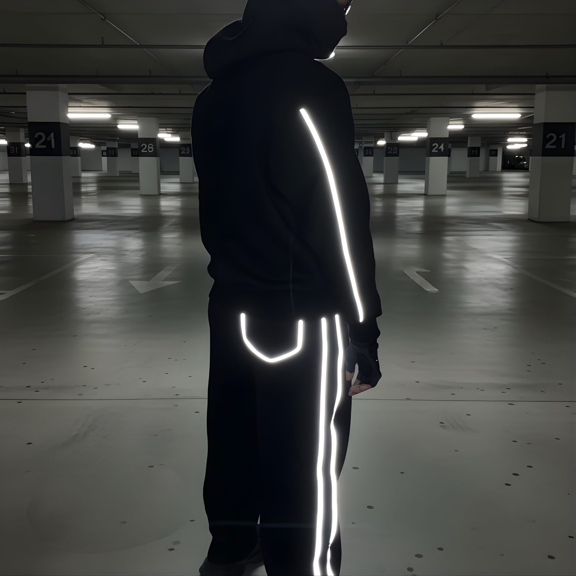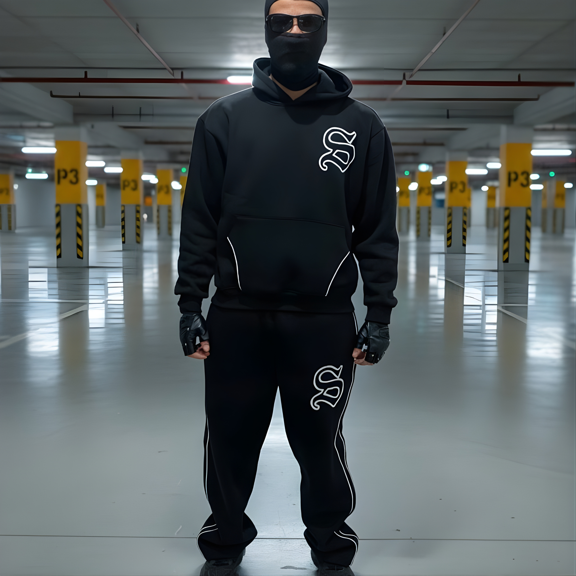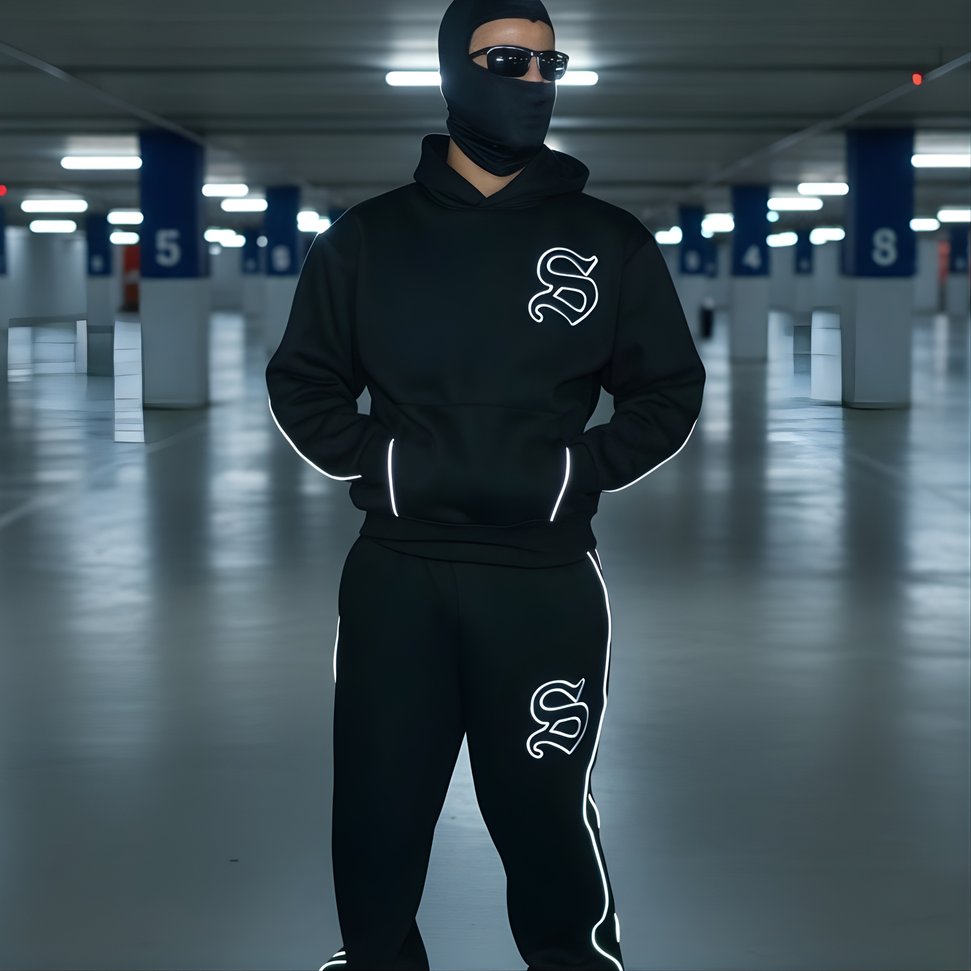 Precision reflective S emblem on hoodie and pants