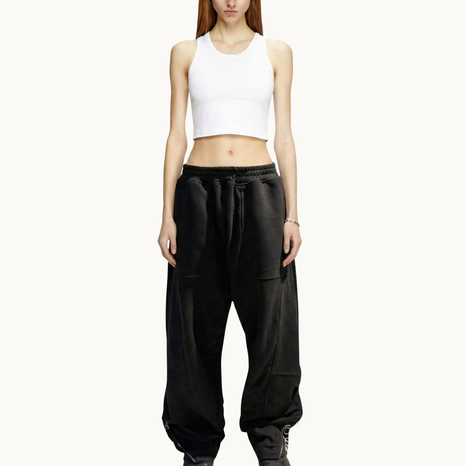 Ankle zippers allow adjustable leg opening and reveal the hidden Sakroski S signature when unzipped — transforming a functional element into a defining design feature. The silhouette remains relaxed with precise proportions, allowing unrestricted movement while maintaining a clean profile.